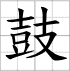 Writing sheet of the character : - gǔ 鼓 (Tambour, battre, simuler, gonfler / bomber)