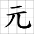 Writing sheet of the character : - yuán 元 (Premier, principal, yuan [ unité de la monnaie chinoise ])
