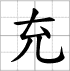 Writing sheet of the character : - chōng 充 (Plein / rempli / comblé, 1. se faire passer pour, servir comme / agir comme, remplir / charger)