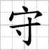 Writing sheet of the character : - shǒu 守 (Garder / défendre, observer, être proche de)