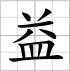 Writing sheet of the character : - yì 益 (Profit / avantage, profitable / avantageux)