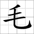 Writing sheet of the character : - máo 毛 (Poil / plume, laine, rude/ brusque, affolé)