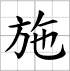 Writing sheet of the character : - shī 施 (Mettre en pratique / pratiquer / exercer / accorder / octroyer / exercer / employer / imposer / user de / répandre)