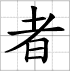 Writing sheet of the character : - zhě 者 ([placé après un adjectif ou un verbe et utilisé comme substantif pour désigner une personne ou une chose])