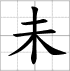 Writing sheet of the character : - wèi 未 (Ne ....pas / ne ...pas encore / le 8e des 12 Rameaux terrestres)