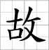 Writing sheet of the character : - gù 故 (Raison / cause / à dessein / mourir / ancien)