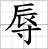 Writing sheet of the character : - rǔ 辱 (Humiliation / honte / insulter / humilier)