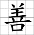 Writing sheet of the character : - shàn 善 (Bienfait / bon / vertueux / avantageux / exceller en / être enclin à)