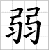 Writing sheet of the character : - ruò 弱 (Faible / fragile / inférieur / un peu moins)