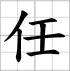 Writing sheet of the character : - rèn 任 (Nommer / désigner / assumer un poste / laisser faire / fonction / poste)
