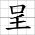 Writing sheet of the character : - chéng 呈 (Avoir une forme (une couleur) / soumettre / présenter)