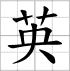Writing sheet of the character : - yīng 英 (Fleur / talent éminent / héros / éminent / beau)