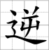 Writing sheet of the character : - nì 逆 (être contraire / aller à l'encontre de / traître)