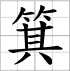 Writing sheet of the character : - jī 箕 (Pelle à ordure / empreintes digitales constituées de lignes non spiralées)
