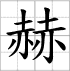 Writing sheet of the character : - hè 赫 (Brillant / impressionnant / remarquable / hertz)