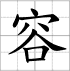 Writing sheet of the character : - róng 容 (Contenir / tolérer / permettre / laisser / expression / mine / aspect)