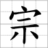 Writing sheet of the character : - zōng 宗 (Ancêtres / aïeux / clan / ordre / objectif / but)