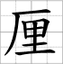 Writing sheet of the character : - lí 厘 (Centi- / une unité de mesure / ordonner / arranger (littéraire))