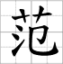 Writing sheet of the characters : - shì fàn 示范 (Démontrer, démonstration)