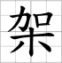 Writing sheet of the character : - jià 架 (Soutenir / dresser, parer un coup ou support / charpente)