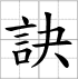 Writing sheet of the character : - jué 訣 (Formule / truc / secret / recette / se séparer pour toujours)