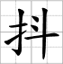 Writing sheet of the character : - dǒu 抖 (Trembler / frissonner / frémir / secouer / remonter le moral)