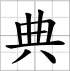 Writing sheet of the character : - diǎn 典 (Canon / code / allusion / citation / cérémonie / mettre en gage)