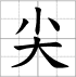 Writing sheet of the character : - jiān 尖 (Pointu / acéré / aigu / perçant / vif / fin / pointe / bout)