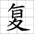 Writing sheet of the character : - fù 复 (Répondre / recommencer / renouveler / tourner / retourner / de nouveau)