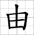 Writing sheet of the character : - yóu 由 (Cause / raison / à cause de / en raison de / par / de / suivre / laisser faire)