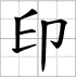 Writing sheet of the character : - yìn 印 (Imprimer / empreinte / trace / sceau / cachet)