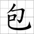 Writing sheet of the characters : - dà bāo 大包 (Point d'acupuncture situé au niveau des flancs du torse)