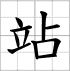 Writing sheet of the character : - zhàn 站 (Se tenir debout / rester debout / s'arrêter / gare / arrêt / station)