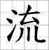 Writing sheet of the character : - liú 流 (Couler / 1. courant / ordre / catégorie)