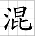 Writing sheet of the character : - hùn 混 (Mêler, s'infiltrer, gagner sa vie tant bien que mal)